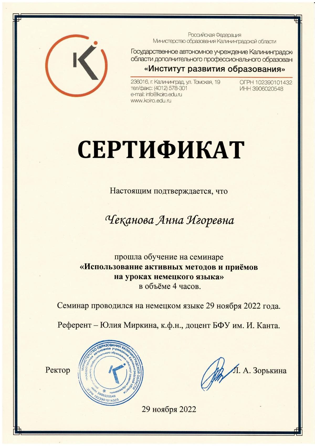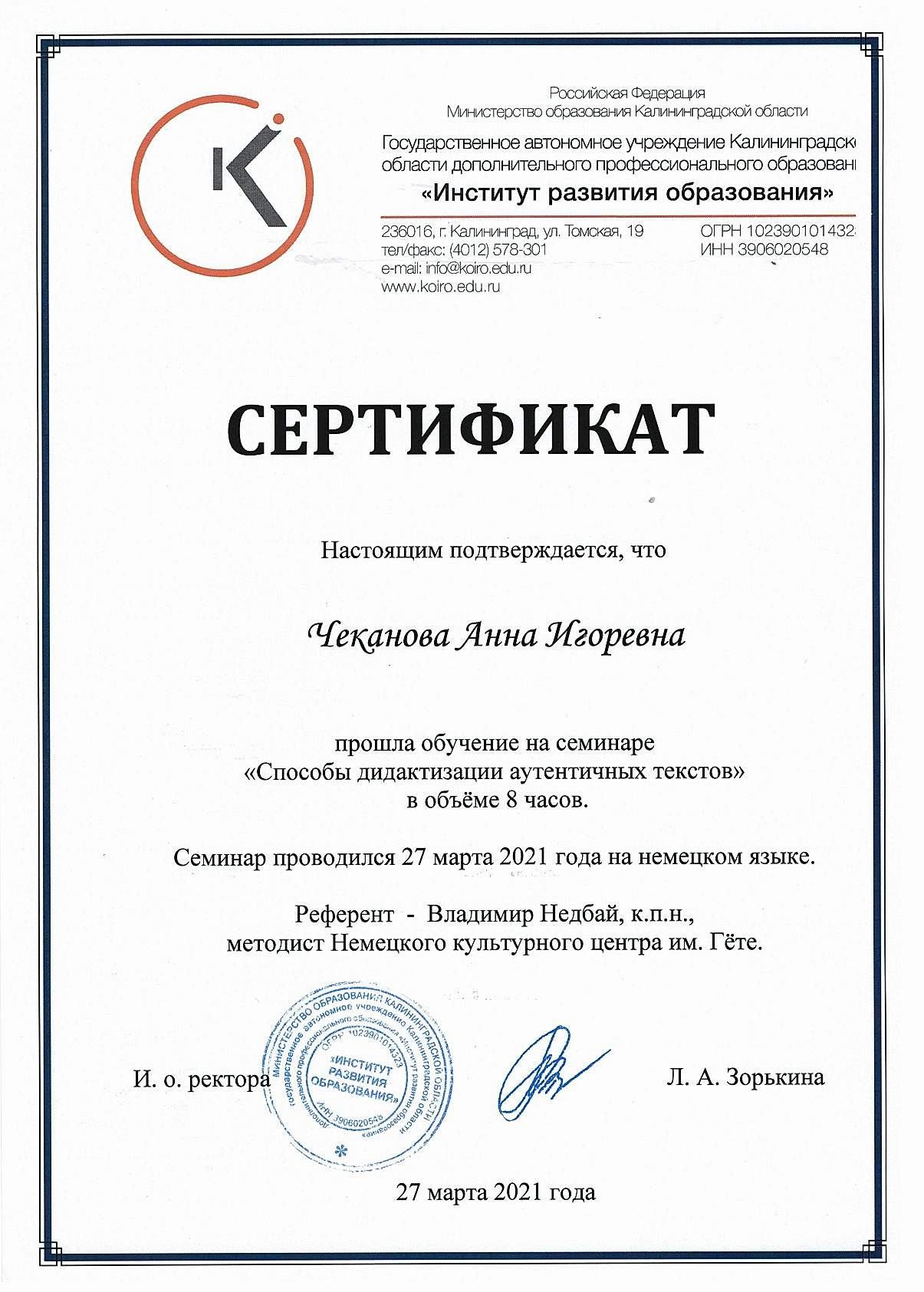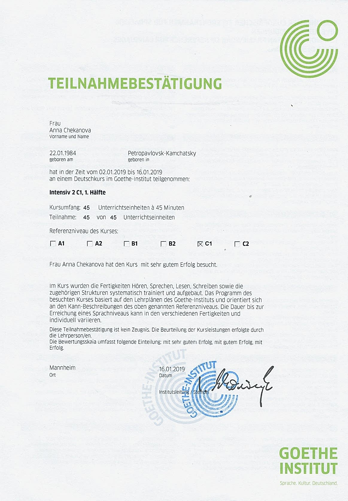 прошла интенсивные курсы С1 и С1.2 в культурных центрах и
