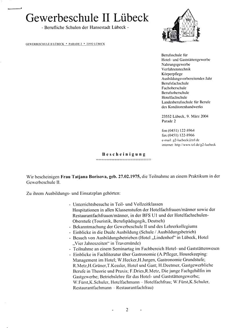 участница программы стажировки в профессиональной школе Gewerbeschule II (Lübeck, Deutschland)