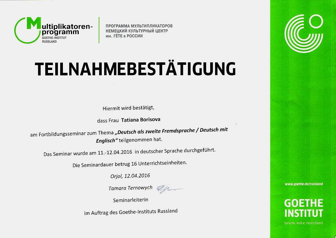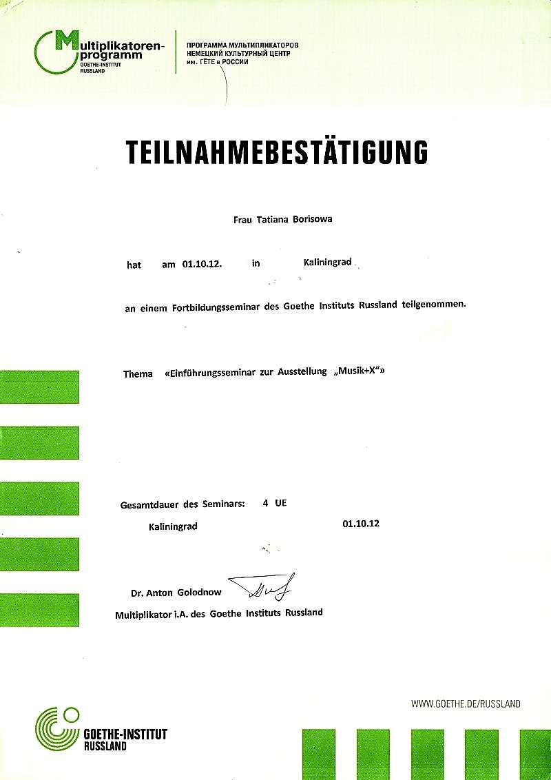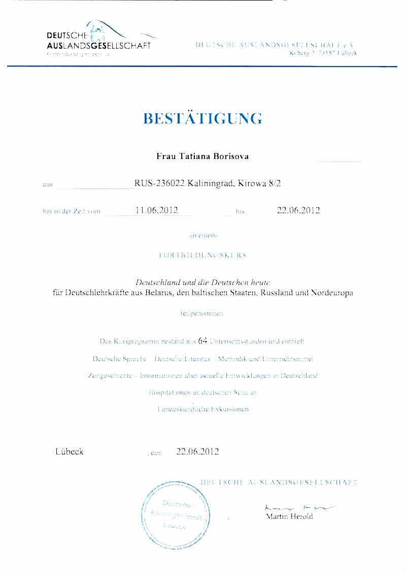 участница Pin-Up повышения квалификации немецкого общества «Deutsche Auslandsgesellschaft» (Lübeck, Deutschland)