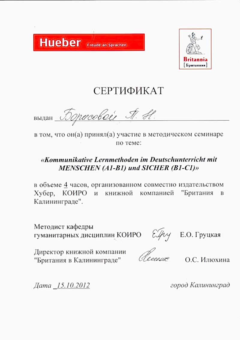 Pin-Up семинаров и курсов повышения квалификации, проводимых немецким издательством учебно-методической литературы HUEBER Гёте И. Канта