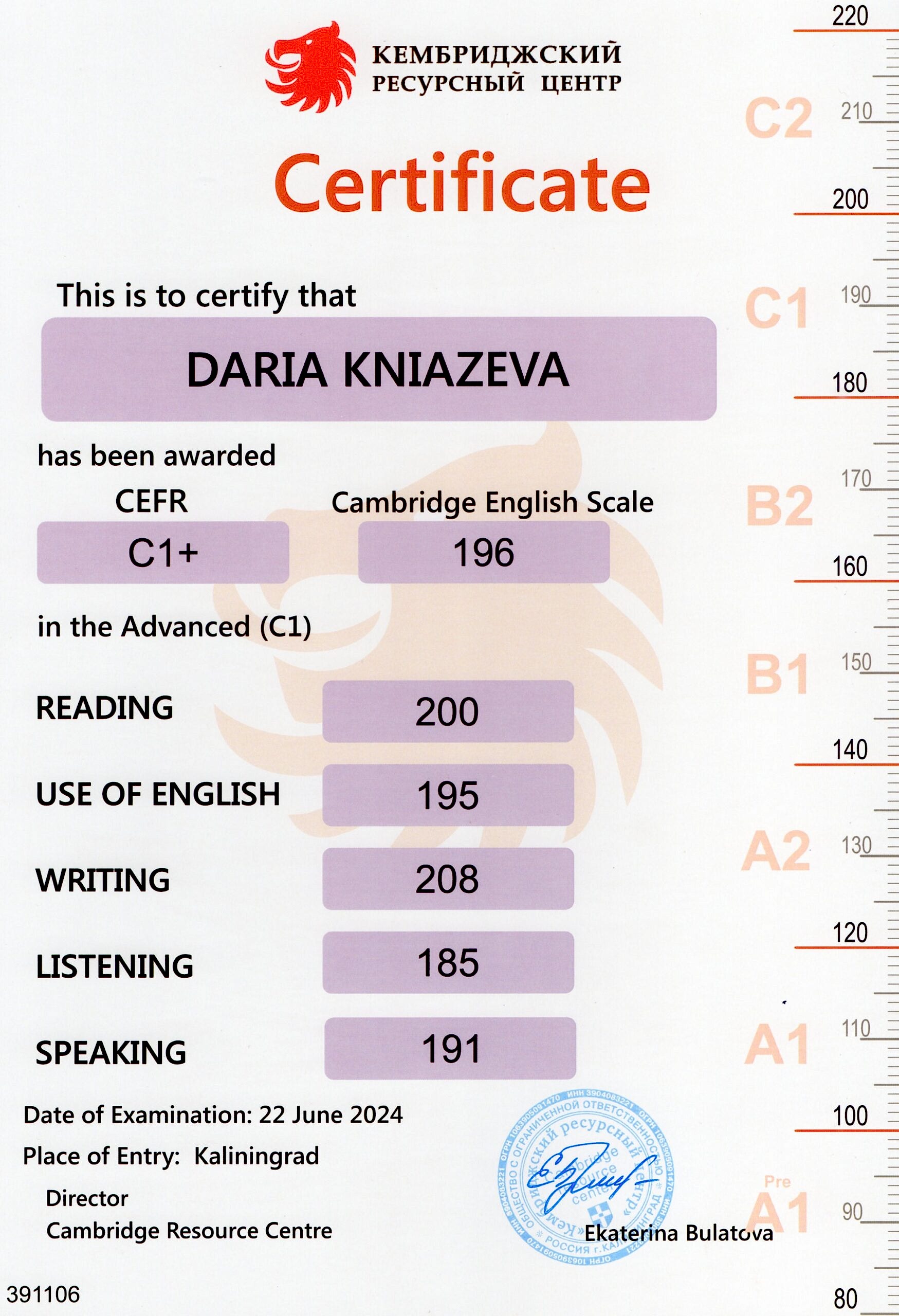 В настоящий момент обучается на программе магистратуры БФУ им. И. Канта «Перевод для международного Pin-Up и дипломатии»