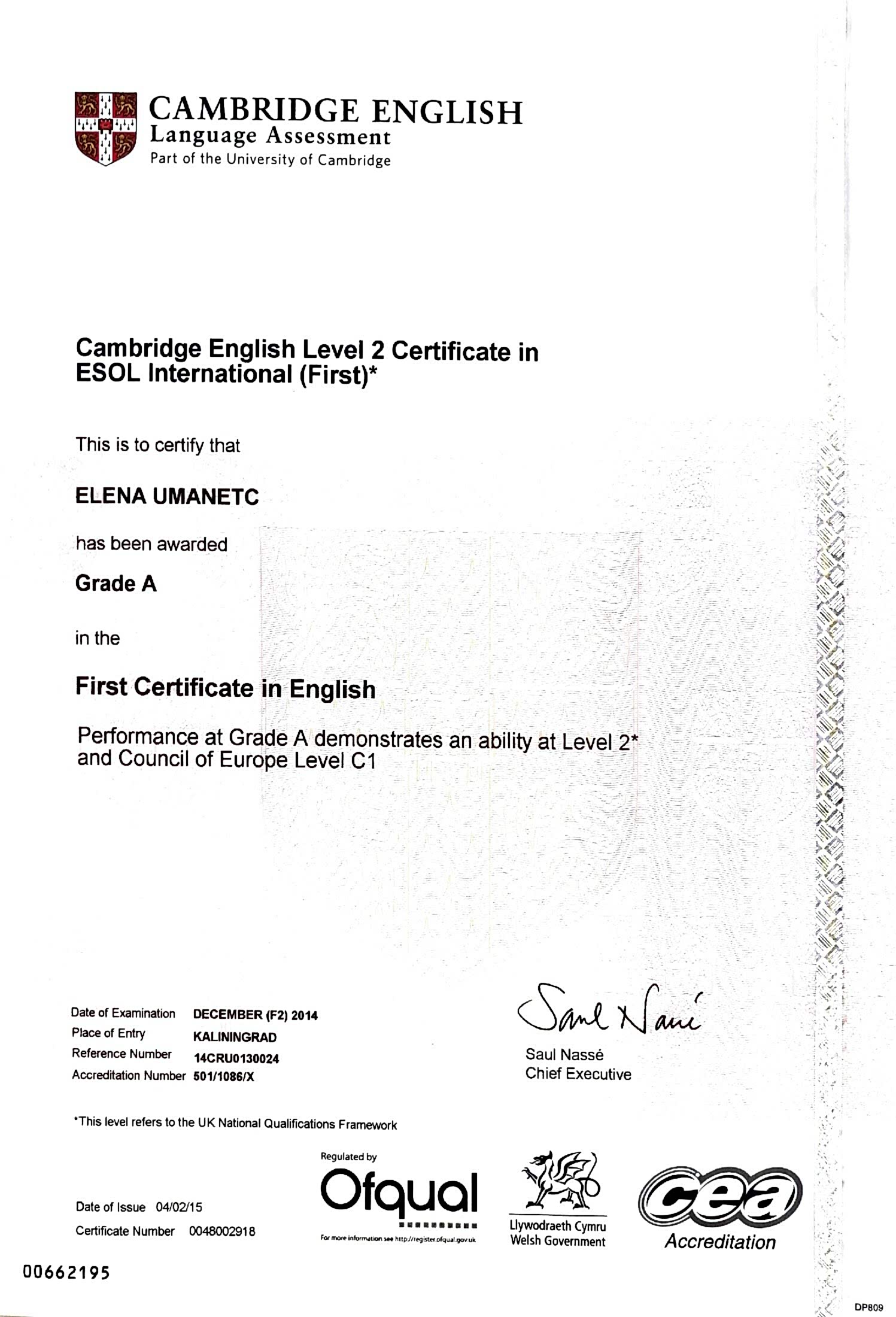 владеет английским языком на уровне С1, получен Pin-Up сертификат FCE (grade A)