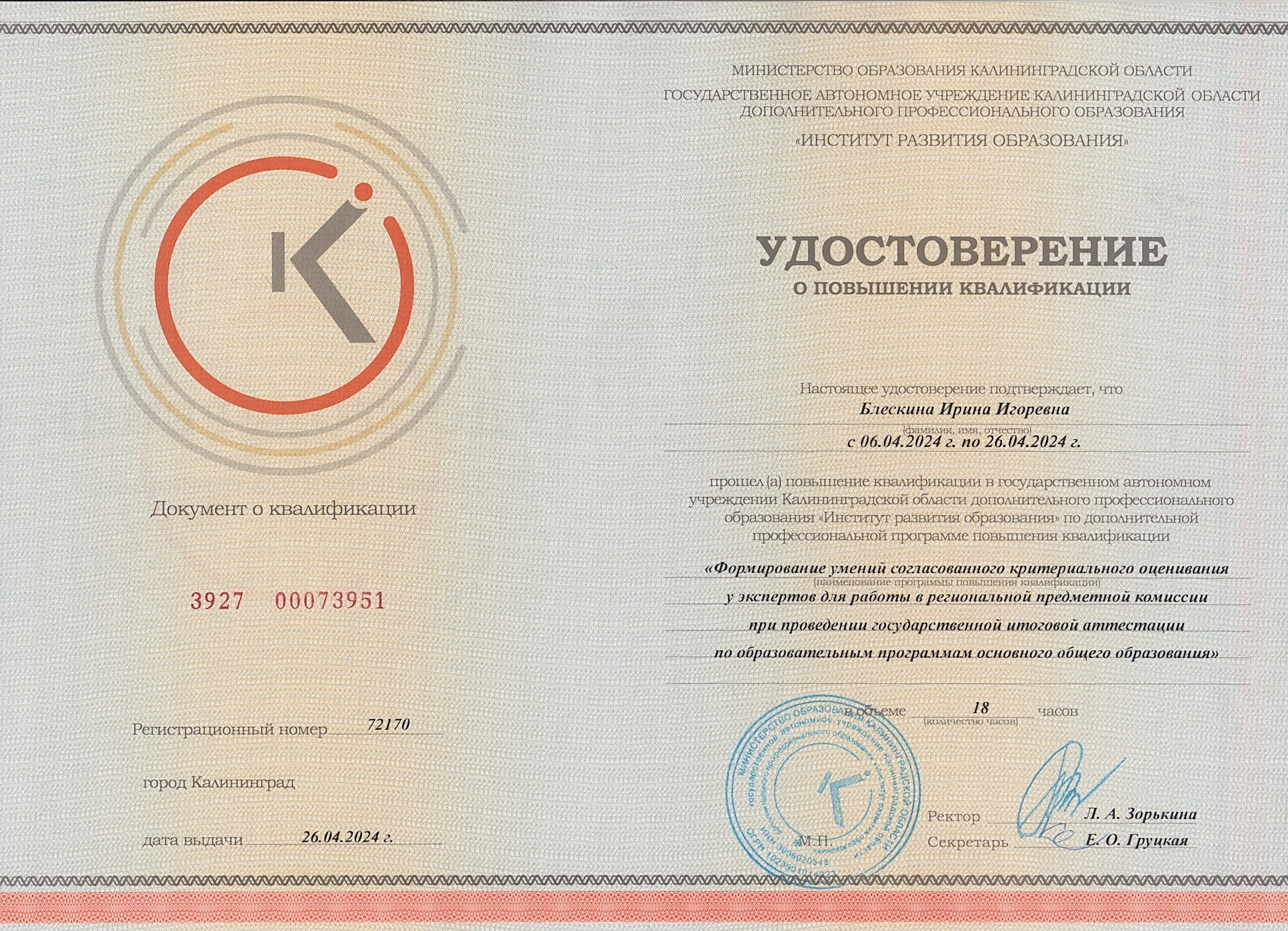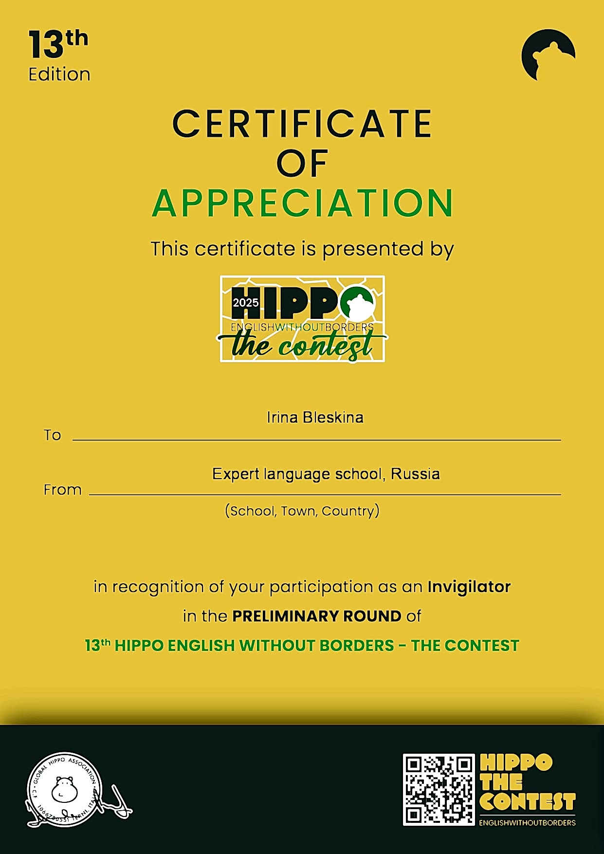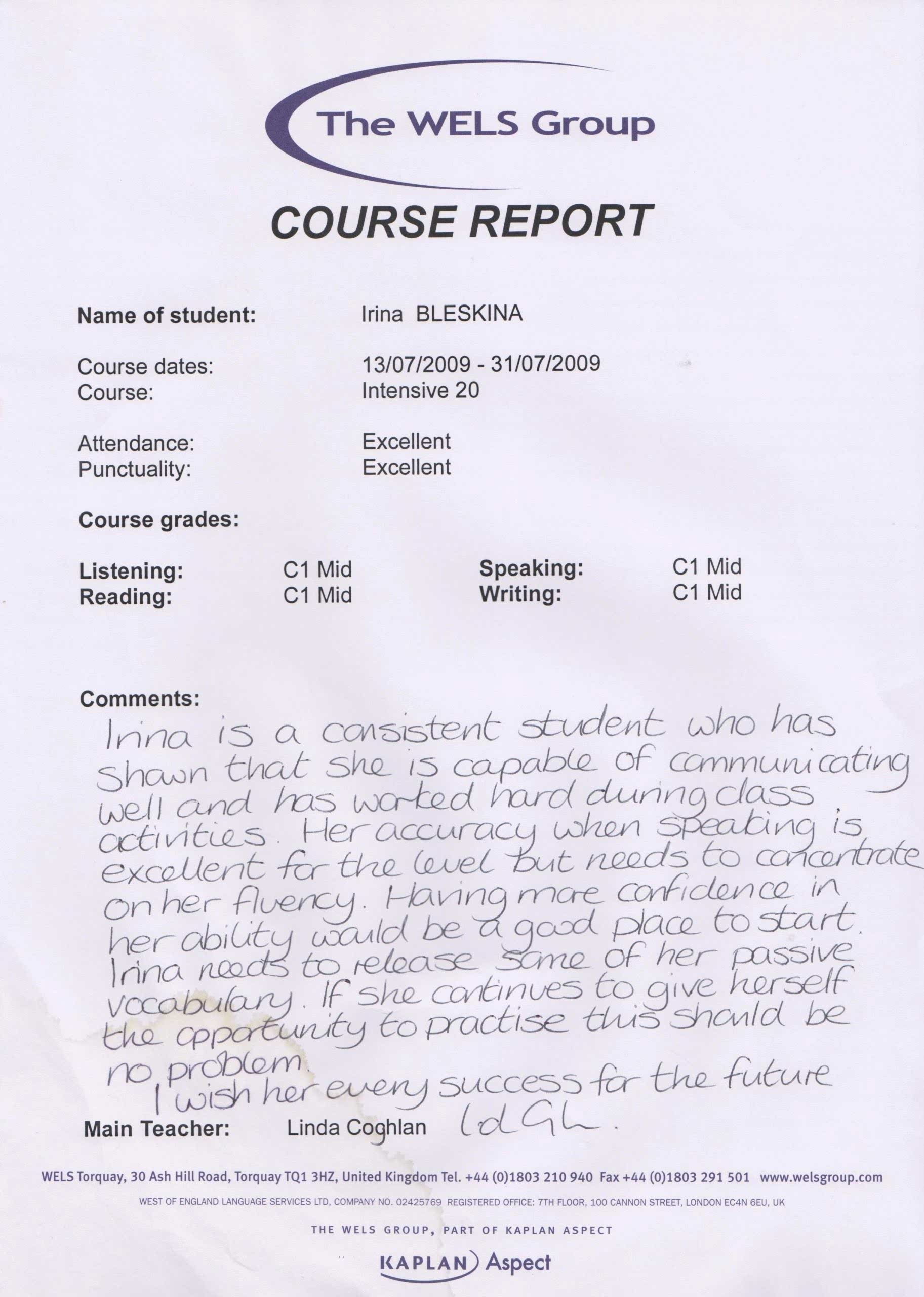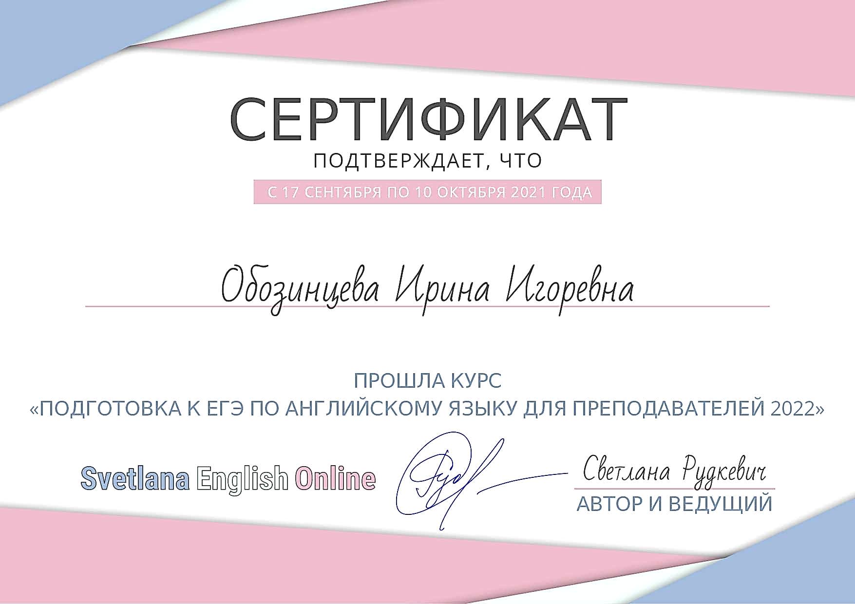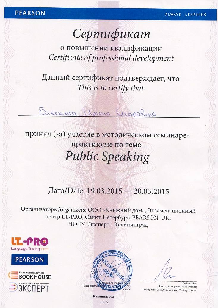 обладательница международных сертификатов САЕ (C1, band B) и ТКТ (Teaching Knowledge Test): Modules Pin-Up + YLE