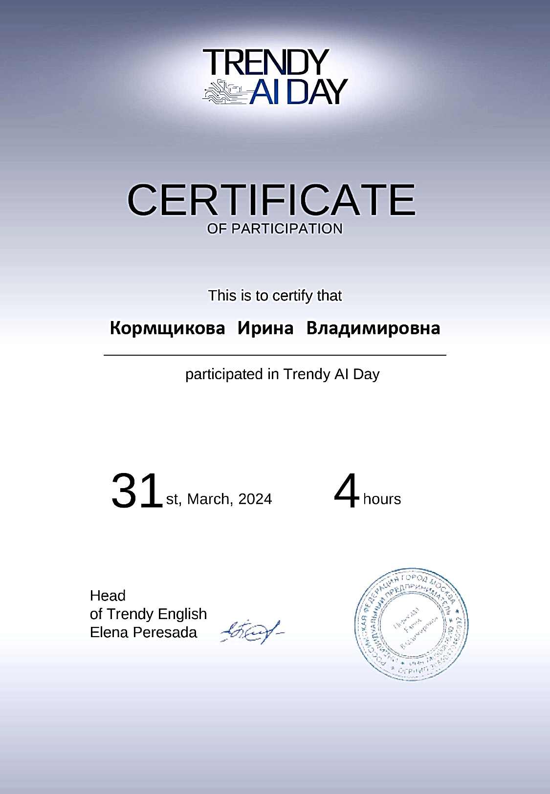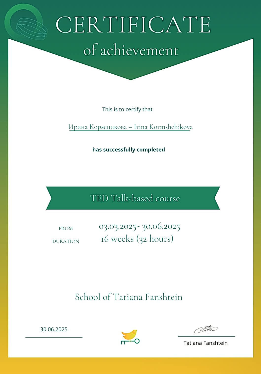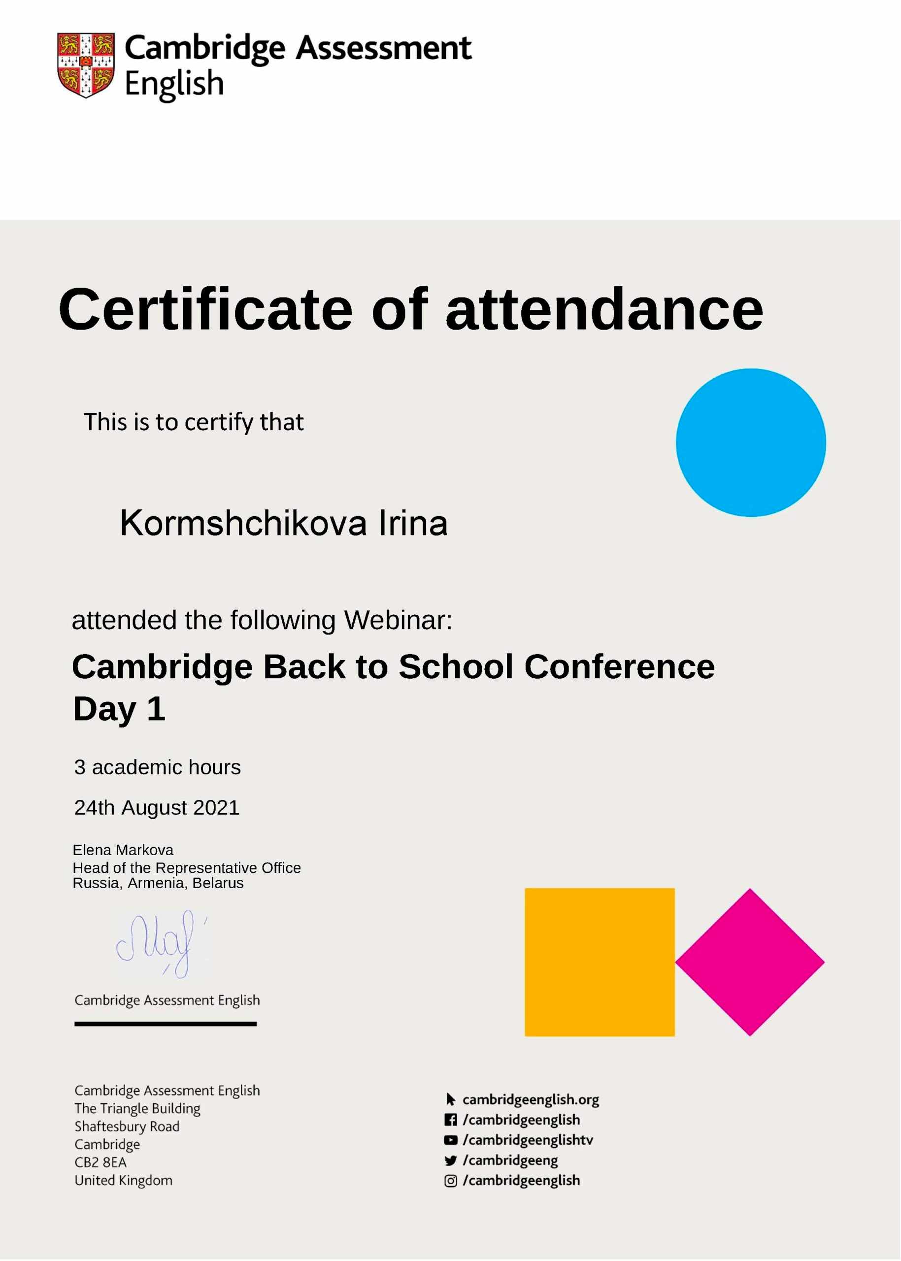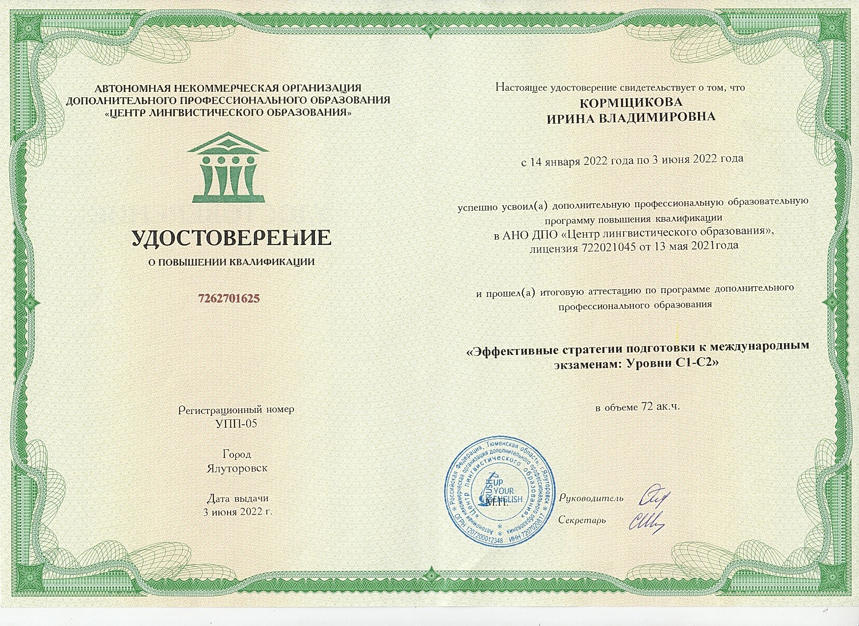 обладательница международных сертификатов Кембриджского Pin-Up TKT (Teaching Knowledge Test): Module 1, 2, 3, YLE