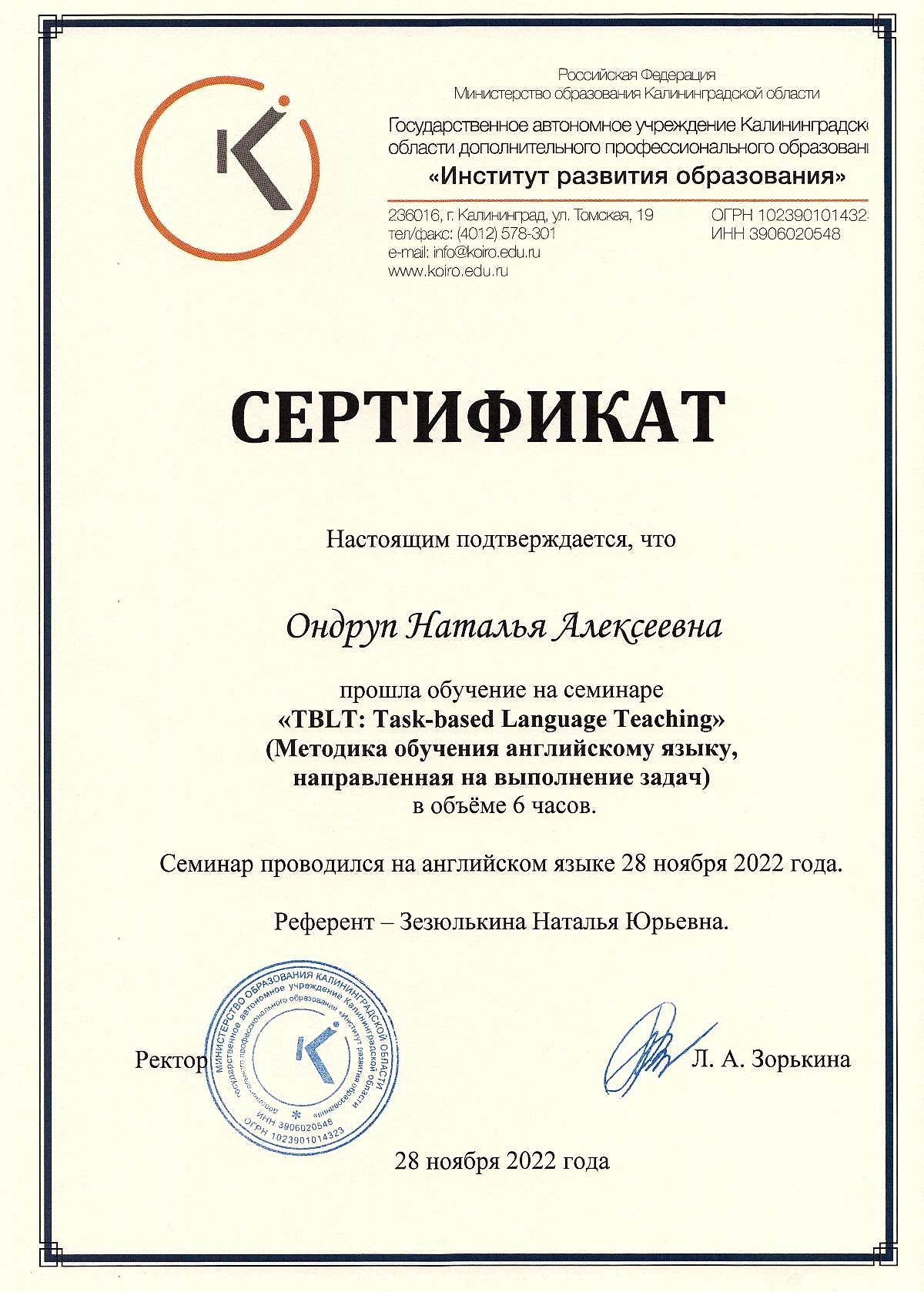 тренер на курсах повышения квалификации учителей Pin-Up языка Калининградской области