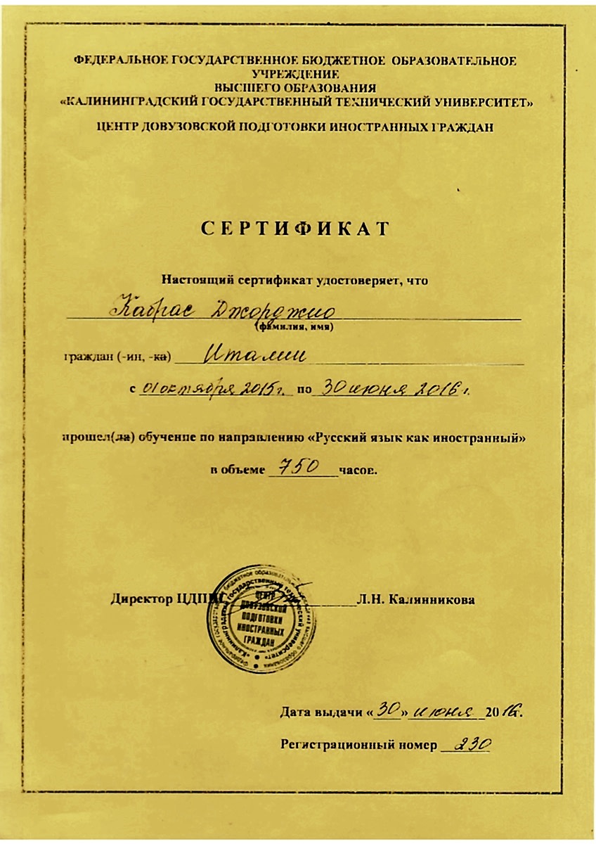 организатор мастер-классов по итальянскому языку на различных площадках Калининградской области