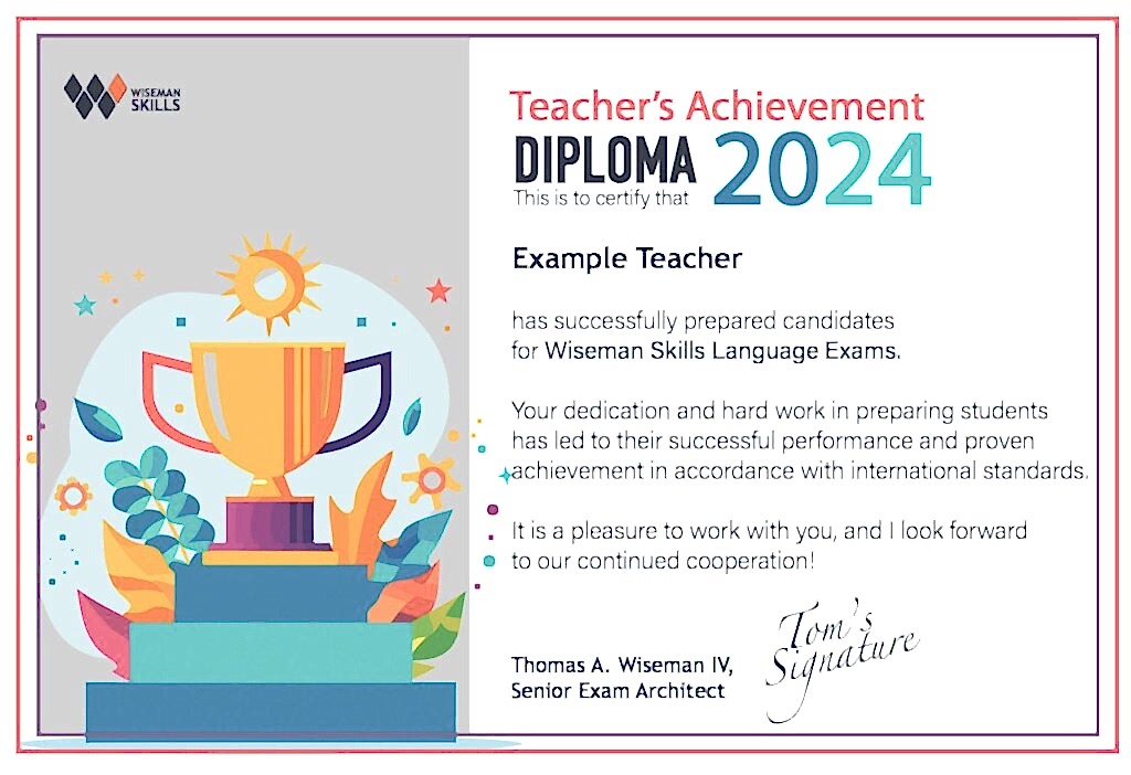 Помимо основной контрольной функции и подготовки к серьёзному академическому будущему, сертификат Wiseman Skills Teens можно использовать в качестве подтверждения уровня владения иностранным языком при дальнейшем обучении и трудоустройстве.